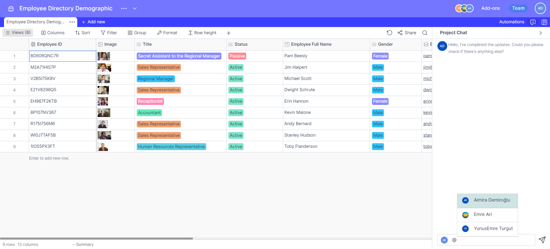 Use the chat icon in the upper left corner of the table to track conversation history from a single place and add comments.