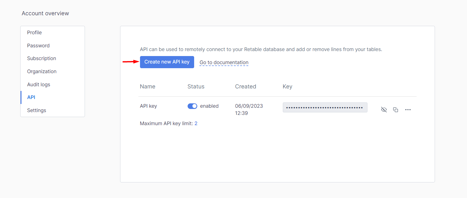When making the Zap, you can decide whether you want Retable to be the trigger app or the action app. In either case, you'll need to connect your Retable account to Zapier. To do this, you'll need to copy your API key from your Retable account page and paste it into Zapier when prompted.