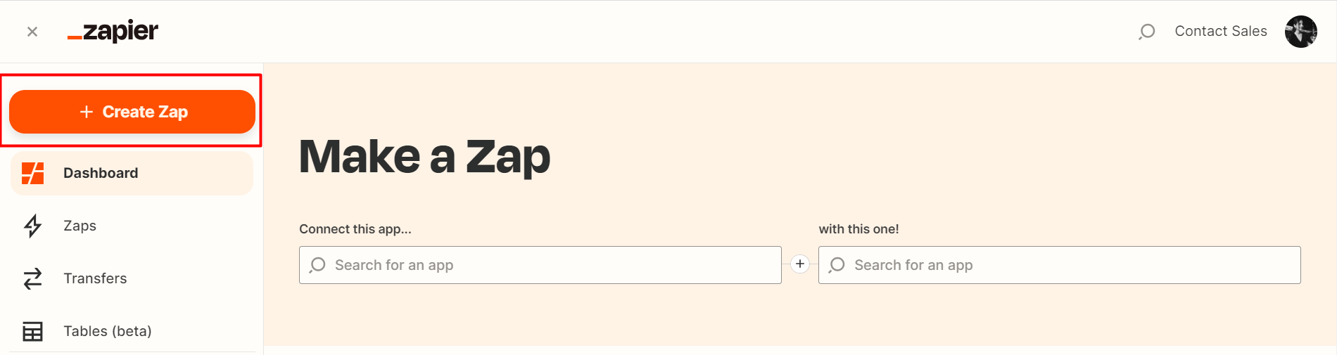 To make a Zap with Retable , you'll need to log in to Zapier (or create an account). From the home page, click the "Create Zap!" button.