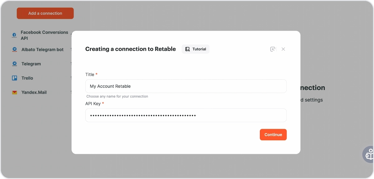 Before setting up integrations with Retable, connect the app to Albato. To do this, go to the Apps section and click the Add a connection button.